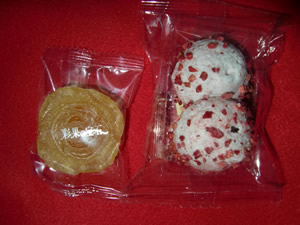 左側がゼリー菓子でバラの形をしています!飾っておきたいくらいかわいいです。お呼ばれしたときのお土産にもよさそうですよねぇ。